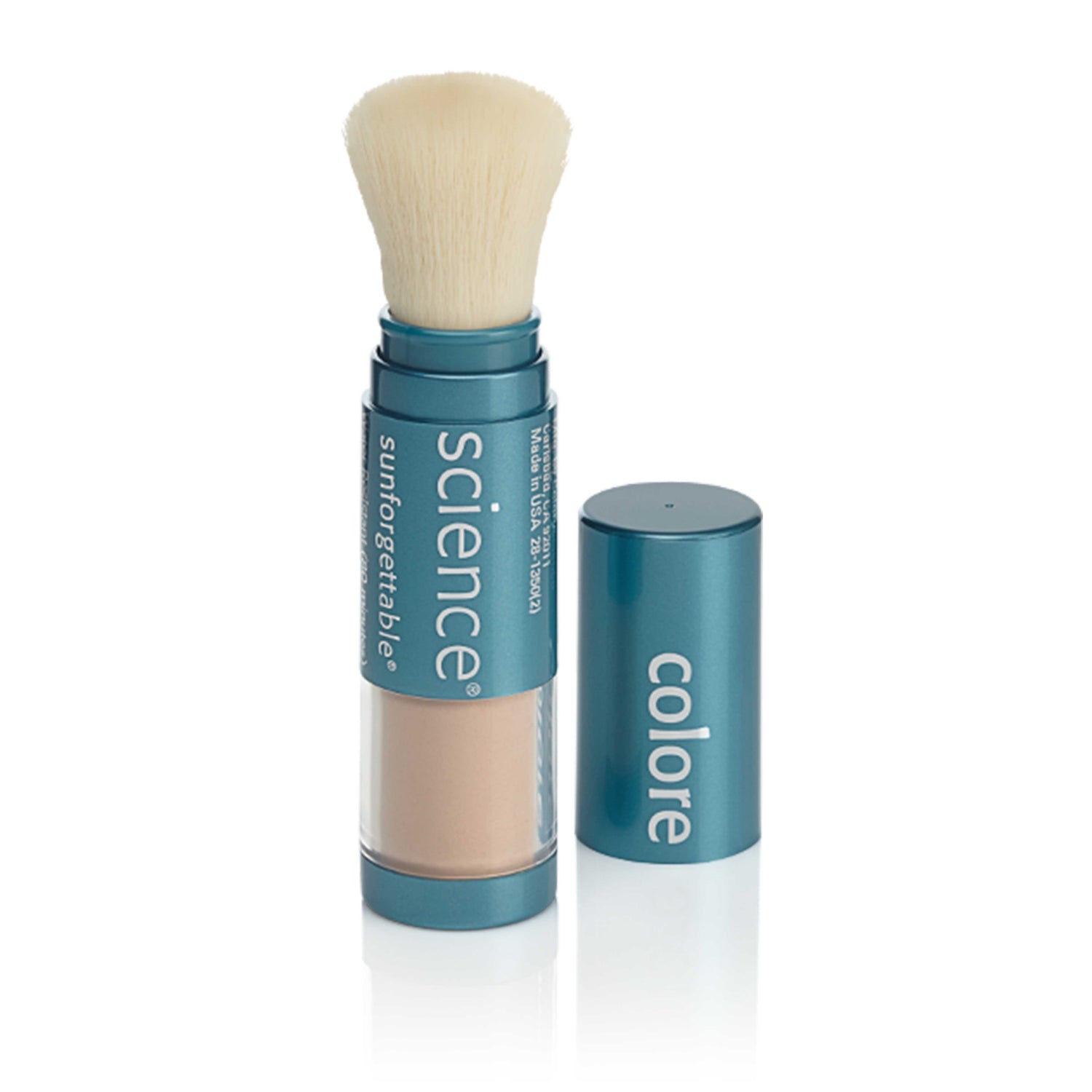 Colorescience Sunforgettable® is the first SPF50, all-clear, mineral powder with broad spectrum (UVA and UVB and Infrared) sun protection. This breakthrough formula, along with the hippest and most effective applicators under the sun, make Sunforgettable® the hottest celebrity must-have. This nearly invisible light weight mineral powder comes in an easy-to-use retractable brush. It is the physician sun protection with zinc oxide and titanium dioxide and will not absorb into your skin. Sun protection is all about stability, Colorescience is a crusader in sun safety education. Unlike traditional sunscreens, this powder can even be applied and be effective once the skin has reached erythema. Those with rosacea, eczema, and other skin problems can use this sun protection. It is effective after skin peels, laser resurfacing and most surgical procedures. Ask your physician's permission. It will not burn your eyes or rub off on your clothes. It keeps your skin cool. 0.21 oz.