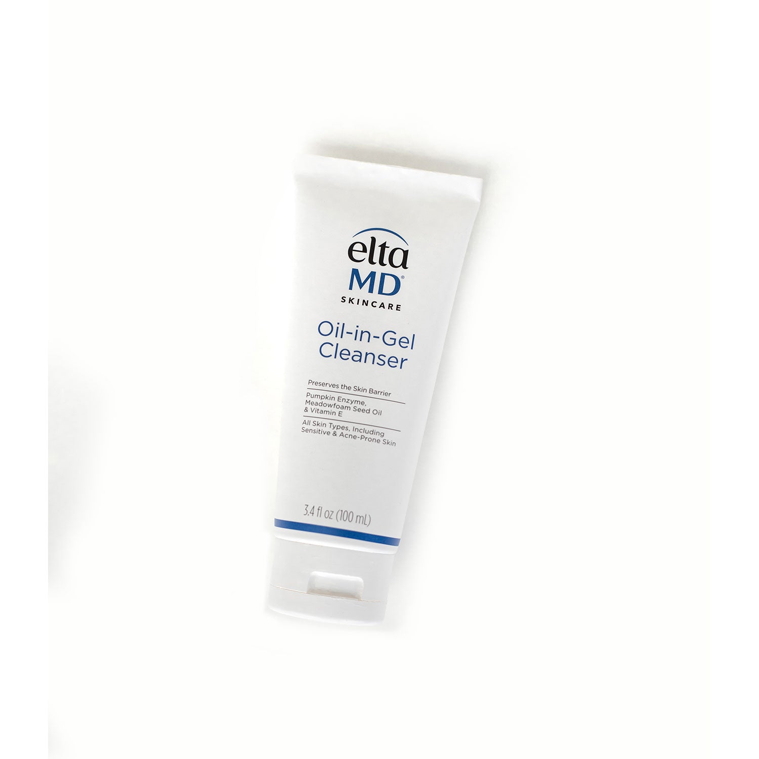 The EltaMD Oil-In-Gel Cleanser has a unique formula that starts as a gel and melts into a silky oil used to gently remove stubborn oil, dirt, makeup, and water-resistant sunscreen in one easy step. The oil then turns into a milky texture once it comes in contact with water and this washes away all the impurities. Formulated with Meadowfoam Seed Oil, Vitamin E, and Turmeric Root Extract, this cleanser effectively hydrates and soothes skin while thoroughly removing impurities. Can be used by all skin types. 3.4 oz.