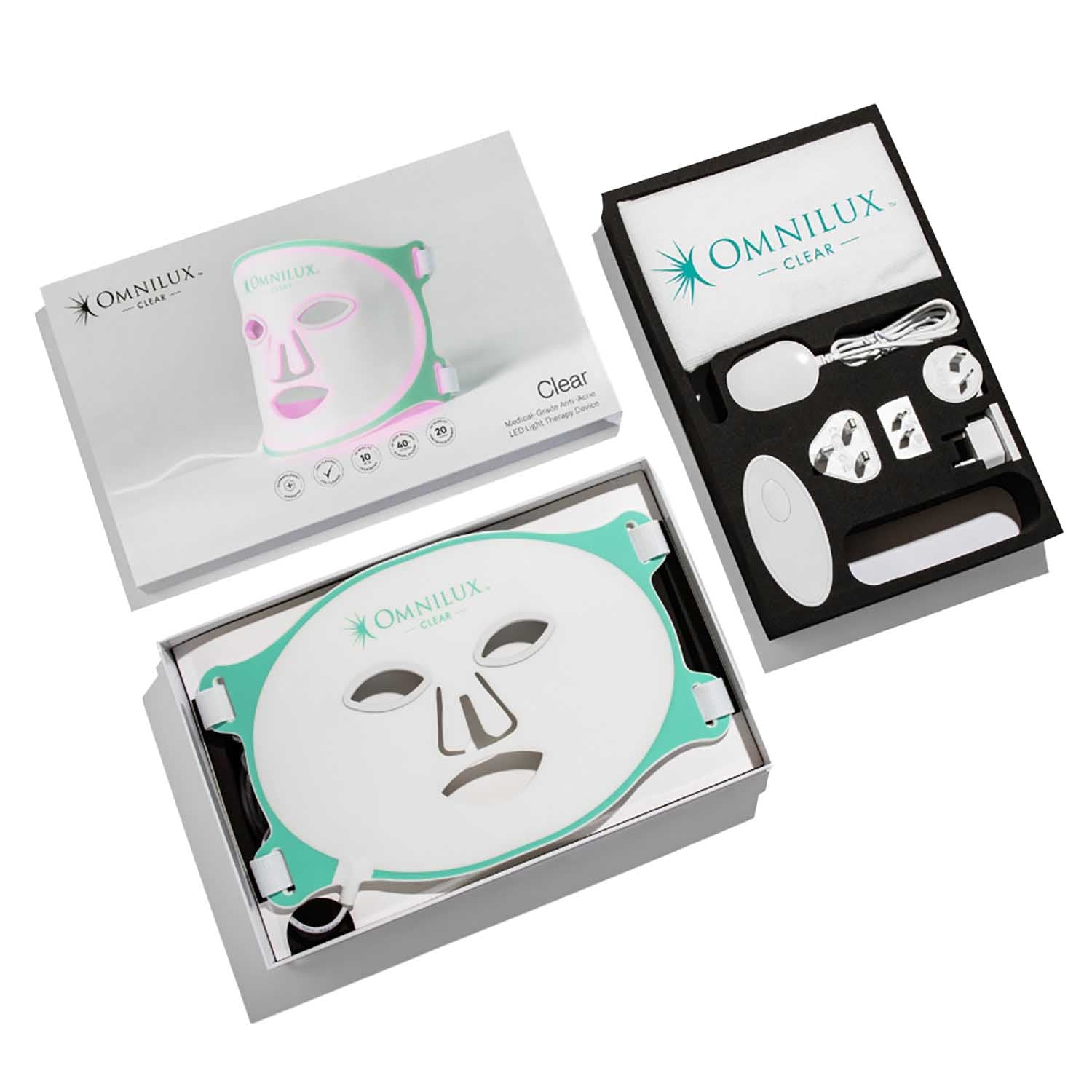 The Omnilux Clear is a red and blue light mask to help fight active acne breakouts. The blue light fights acne-causing bacteria, while the red light activates skin healing. The Omnilux Clear mask is flexible, form-fitting directly to your face. This mask is proven to reduce blemishes, redness, and inflammation associated with acne while reducing the appearance of acne scars. This acne-fighting mask is meant for those experiencing active mild to moderate acne and is not recommended for use with clear skin.